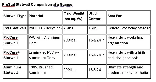 ProSlat Slatwall Comparison at a Glance